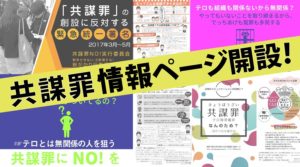 【拡散希望】「共謀罪」の制定を阻止しよう!情報ページを開設しました!署名、プラカード、各種チラシ、集会情報、その他共謀罪に関する情報をUPしていきます!各種共有ボタンで拡散を!詳細は→ Tweet 話し合うことが罪になる … 続きを読む 「共謀罪」の制定を阻止しよう